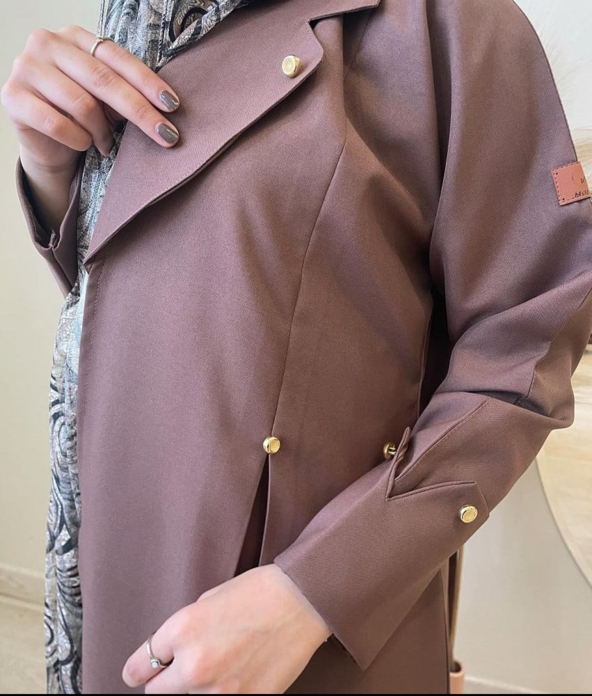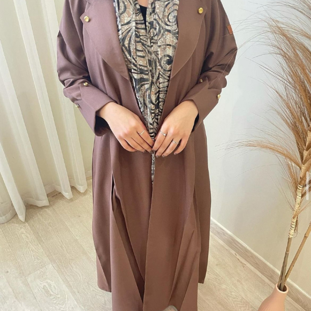 ‏عباية كريب كتان بني
